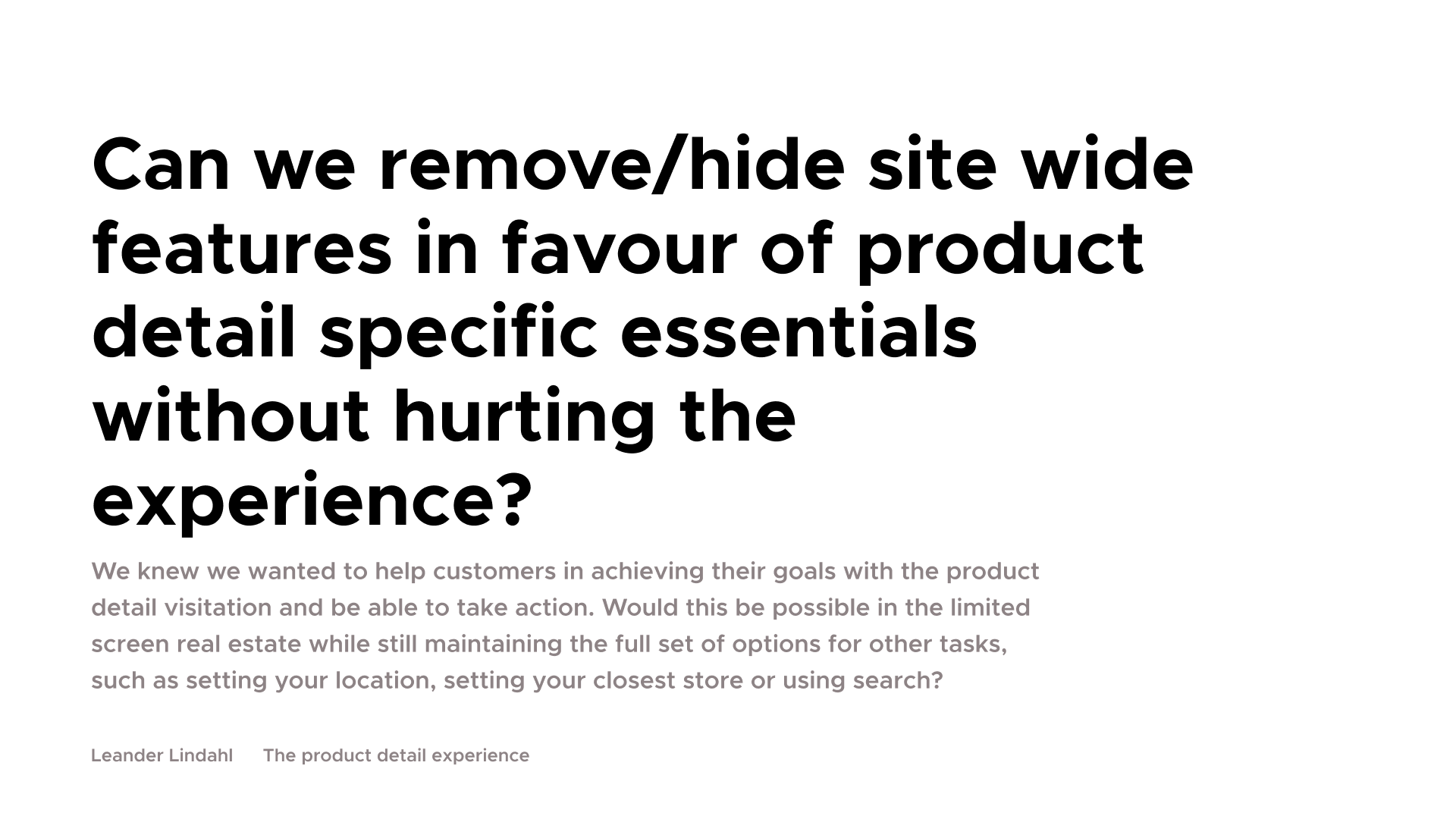 This project was about investigating what elements are essential on a Product Information Page in the constrained space of a mobile view port.
